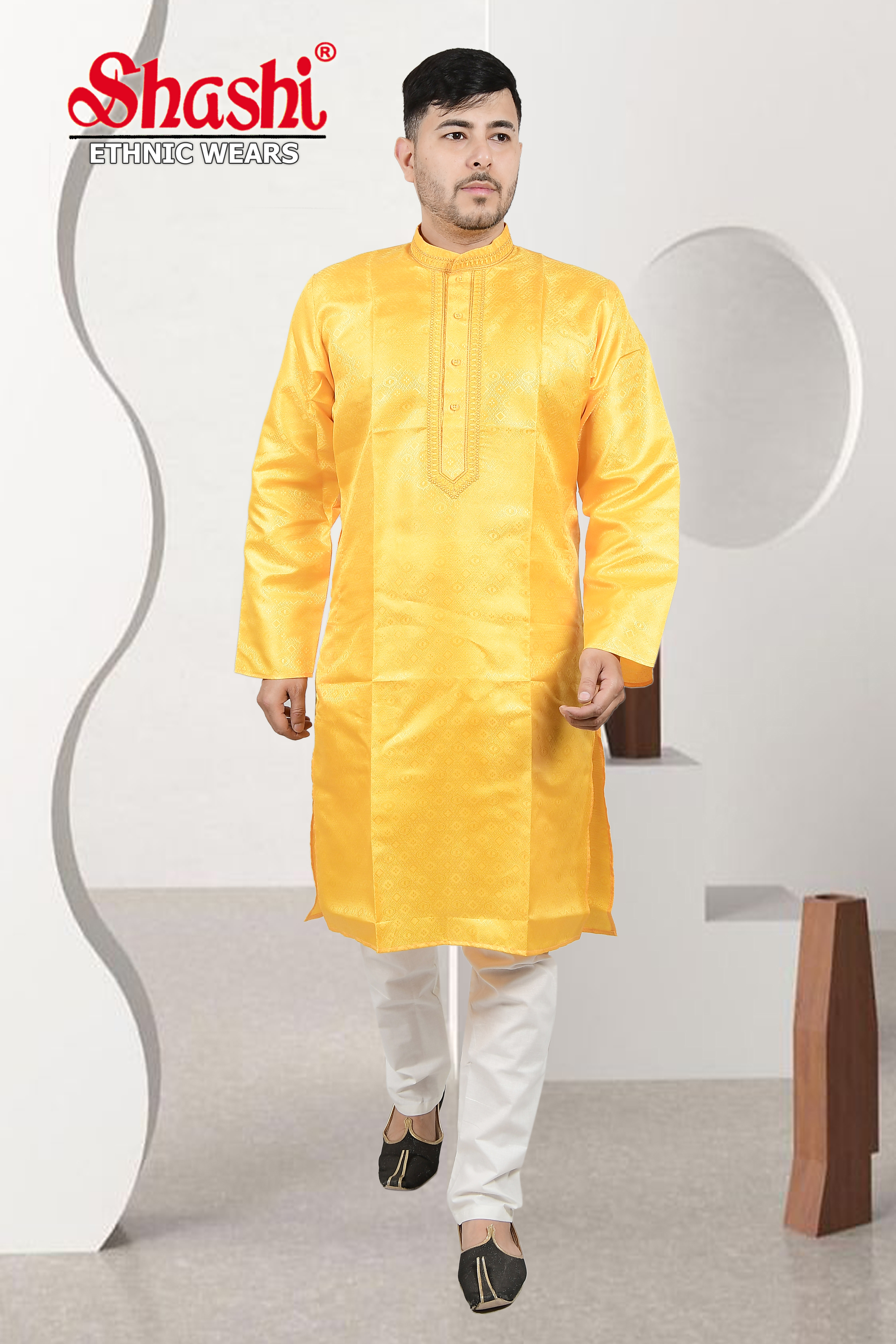 Style: Men's Knee length Kurta with churidhar pajami as set